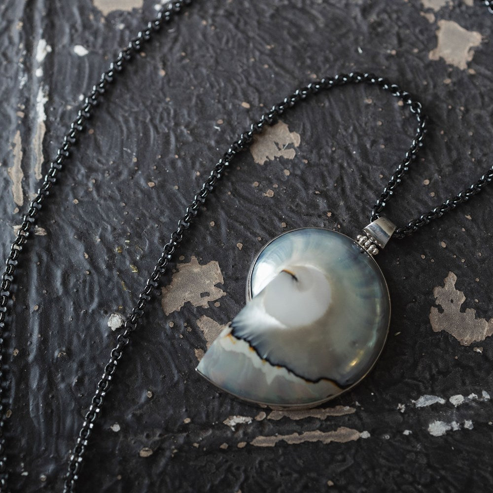 2.25" long pendant paired with a black gunmetal 32" chain.