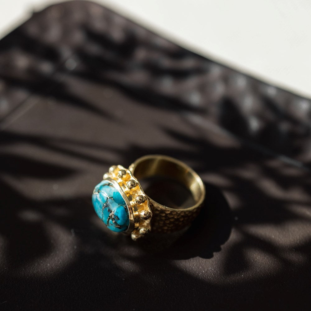 Laksha Ring-moonstone, copper turquoise, chalcedony