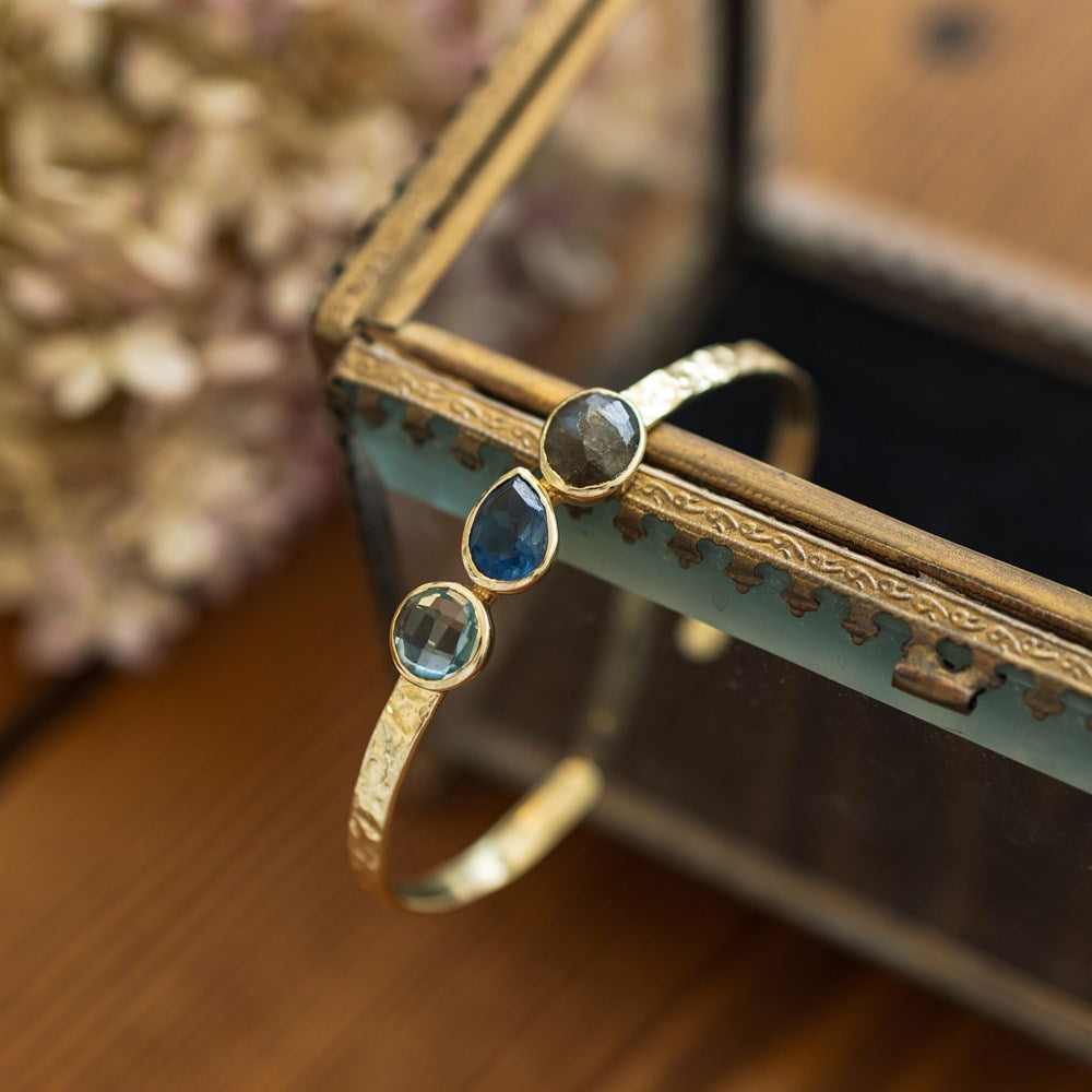 Laksha Cuff-chalcedony, blue topaz, labradorite