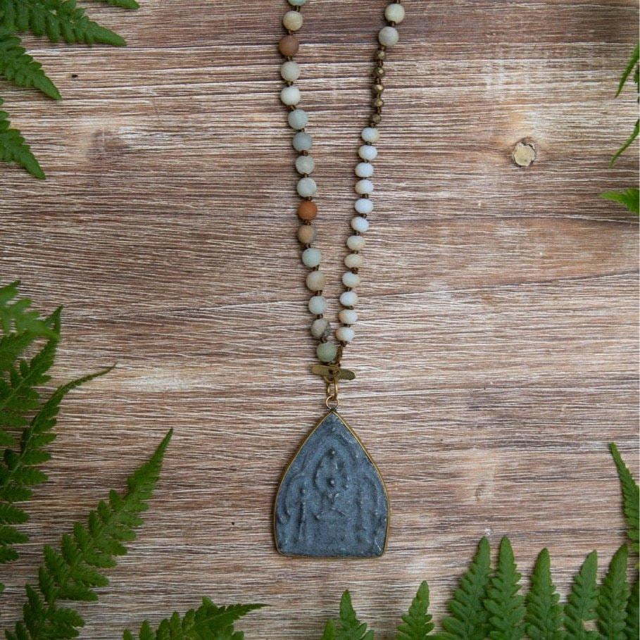 made with natural amazonite, pyrite, and agate