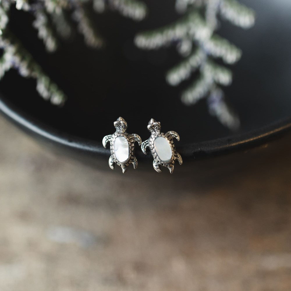 The studs are 0.5" long and 0.25" wide. Made with natural mother of pearl.
