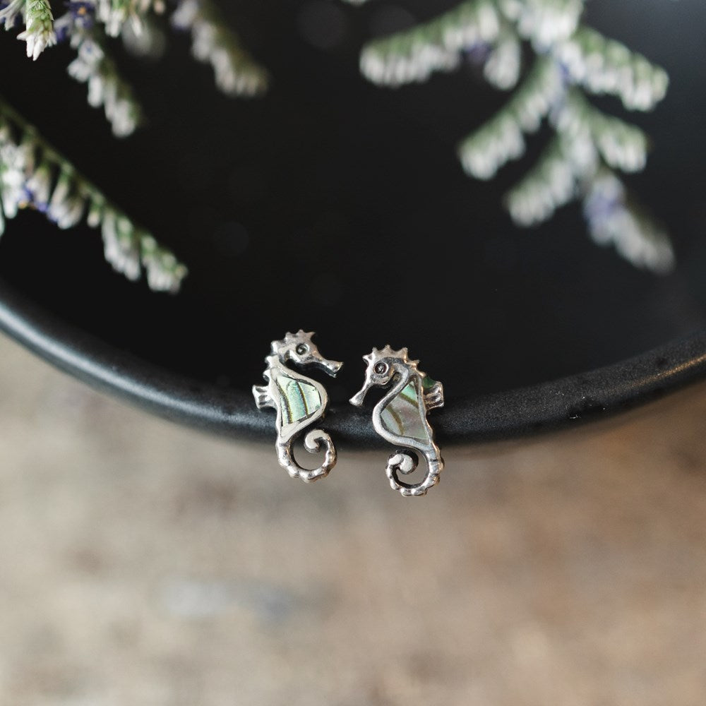 The studs are approximately 0.5" long. Featuring natural abalone.