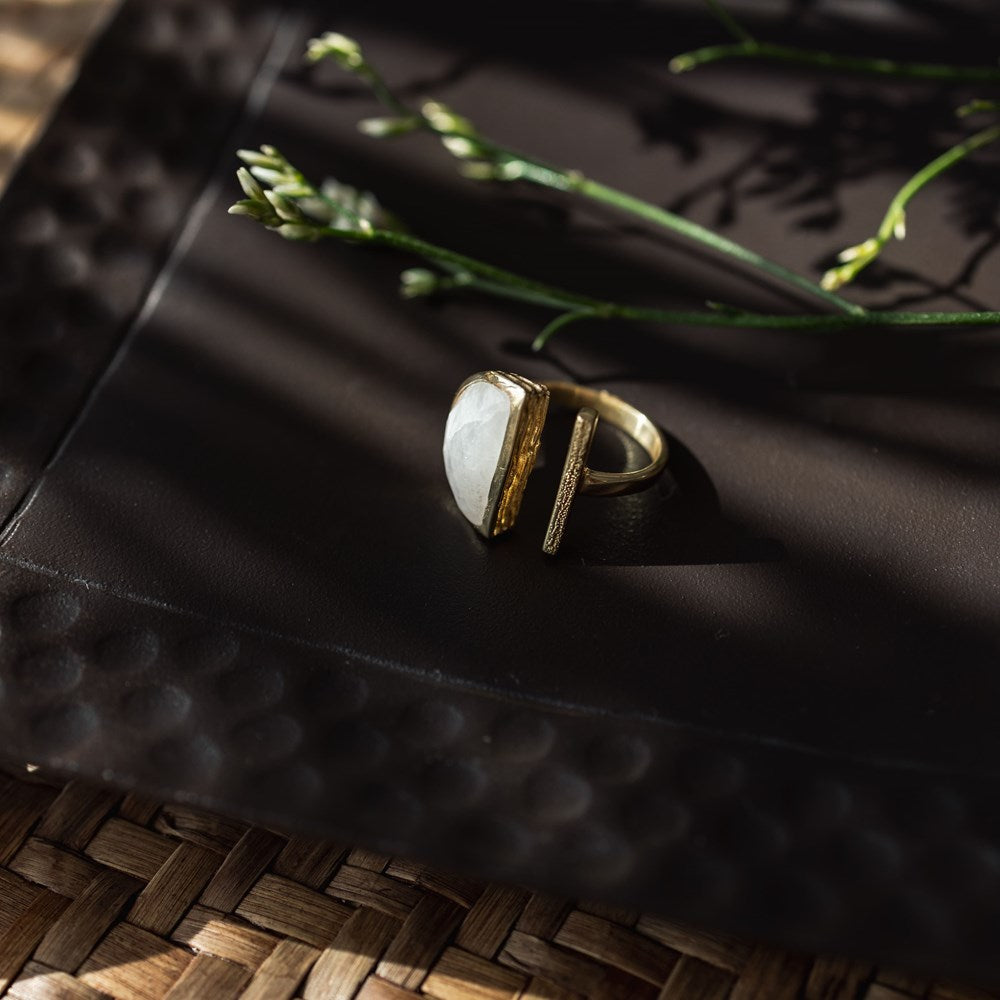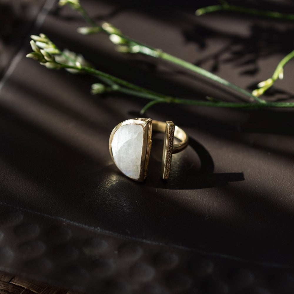 Slightly adjustable to fit sizes 7-8. Made with natural moonstone.